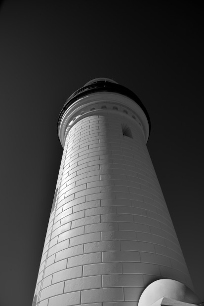 A different view of an iconic lighthouse highlighting the blockwork and its unique design.