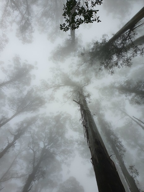 The photo is a completely natural, unfiltered image celebrating nature in all of its innocence. The mid-Autumn fog dances up the ancient mountain ash Eucalypts blanketing their branches in an almost protective blanket to hide it's population of lyrebirds from the prying eyes below. This image was taken during an afternoon walk through Sherbrooke Forrest, VIC.