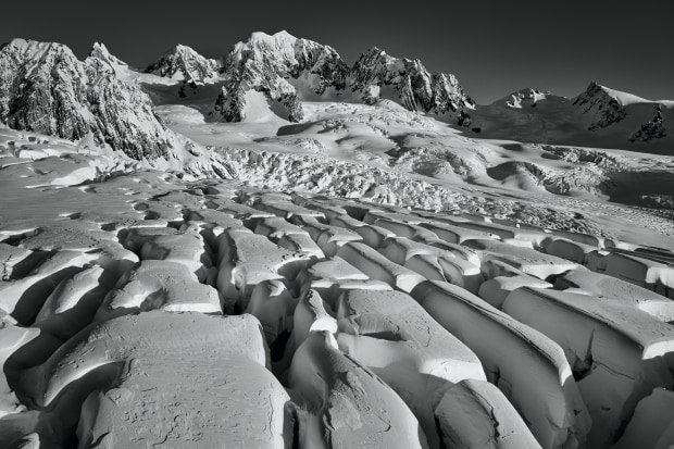 High up on the glacier, the lines of the crevasse dance across the surface, though be careful not to lose yourself in the depths in between.