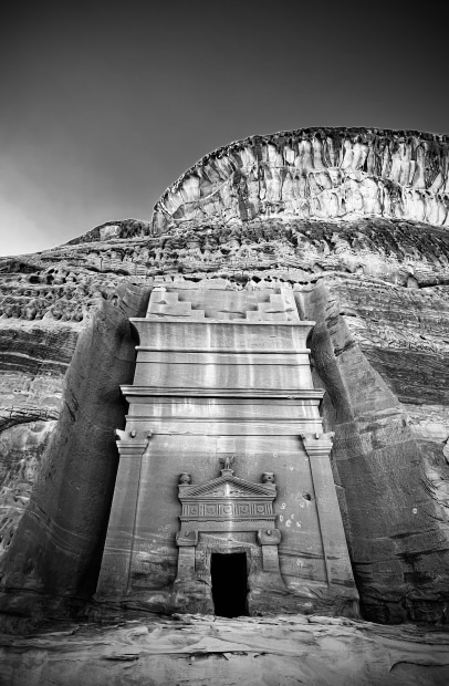 Eerily quiet desert landscape of the newly discovered civilisation and the pristine sandstone chiselled tombs of Hegra, in Alula, Saudi Arabia, are slowly being discovered by the world. These stark monuments were built over 2000 years ago by the enigmatic desert Nabatean kingdom, who also built Petra in Jordan. Hegra laid undisturbed for millennia and those who have had the privilege to walk amongst and marvel, know they are amongst the very few.