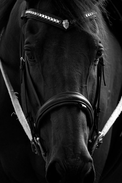 The inspiration for my close up of this horse after a workout at a country Equestrian Centre and the beauty of this dark and handsome horse with its jeweled bridle, the eyes wide the veins pumped full of strength from the hot day.