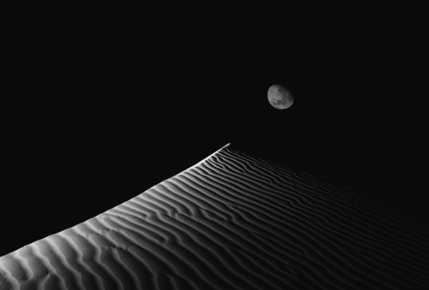 Moonset Over the Dunes. The moon setting over Lancelin Dunes at midnight