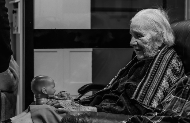 My Mum lives in a memory care home, so do many other Mums. They've become family to me. Sitting there I look over with my camera towards Margaret, who I describe as the matriarch of the community. Her face is so bright and joyful when children are around, even when they aren't real. The baby doll didn't have 'shoes' on and she had been nursing it in her lap and holding its tiny feet making sure it was warm. Aren't memories and the brain a strange concept? Is this implicit memory, the type of memory that operates without conscious awareness, using those maternal skills and feelings from all those years ago? Whatever it is and however it happens, it gives her a lot of joy.