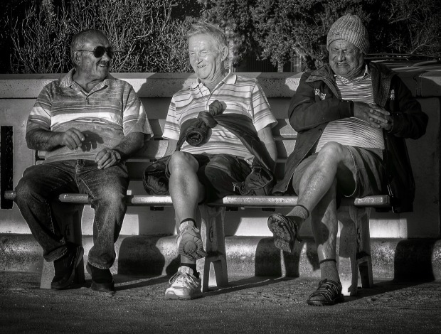 Three men enjoying the sunshine and conversation Mordialloc pier Victoria