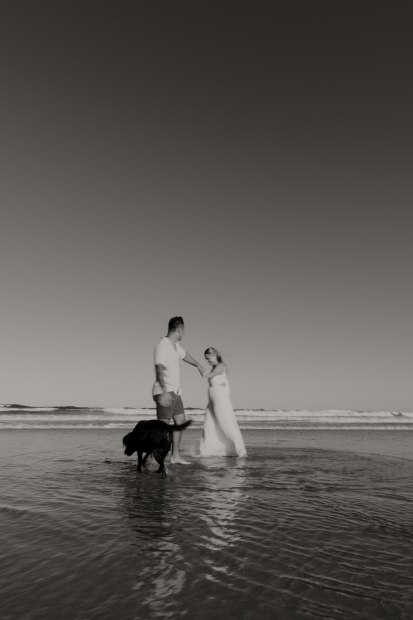 Matt and Taylor with their beloved Luna dancing on the waters edge.I love the blur I have incorporated to show their motion.