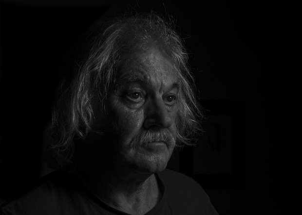 I had organised to make some portraits of a "famous" person for a competition I wanted to enter. I wanted to make an image that had dramatic lighting with a black background. I seldom use any artificial lighting so I desperately needed to reacquaint myself with studio lighting. I needed an available, inexpensive model who was prepared to accept direction. The only person available was me. So here I am, three iterations with evident perspiration as I operate in panic mode.