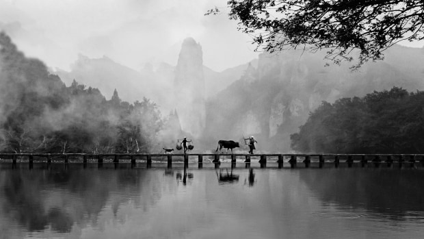 A very early start to get down to the river near Lishui in China brought it's rewards with the farmer and his wife crossing the bridge in the mist with the beautiful backdrop of the mountains