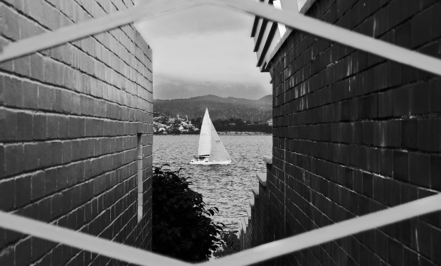 This photo was taken in between two house in Hobart that looks over the harbour.