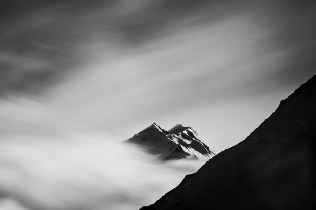 An incredibly powerful storm shows its moods, allowing flashes of Mt Cook's peak to breath the fresh alpine air