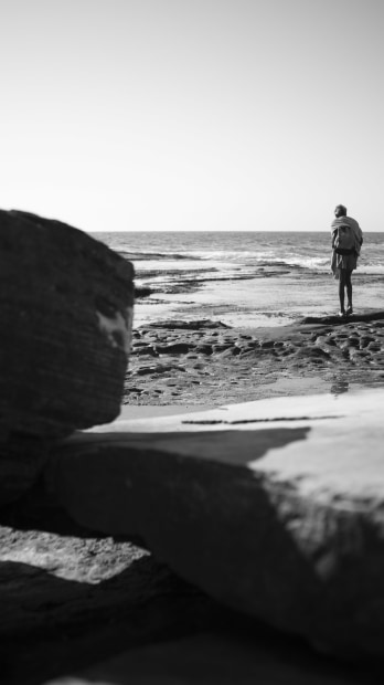 I collect myself, my thoughts, my heart at the beach regularly, which also means I notice other regulars. There is one man who has his ritual despite weather and people. This is Him. I want to know his story.