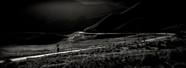 The sun had just risen over the hills highlighting the winding road through the scenic Lindis Pass on the South Island of New Zealand