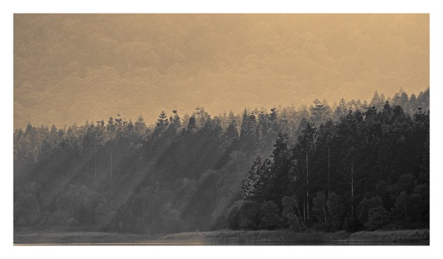 Sepia-toned morning rays at Lake in Maleny Queensland.