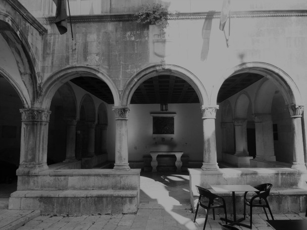Taken in St Mark's square the Old Town Korcula early morning showing the old Altar before prayer time.