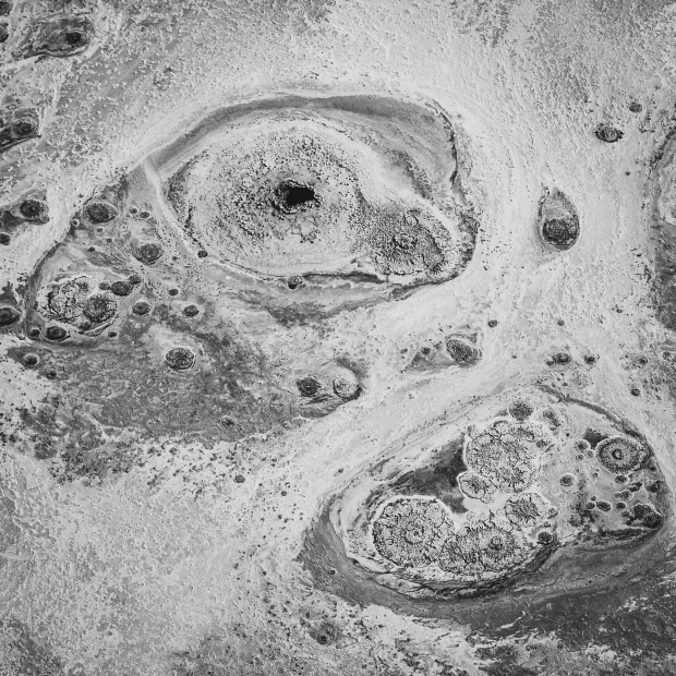 An aerial shot of mineral vents taken from a flight over Lake Eyre.