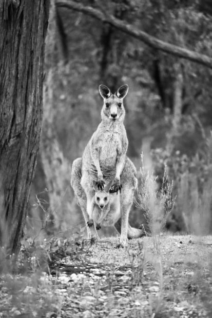 I was camping locally at Teddington Reservoir when I woke to this beautiful mother Kangaroo and her curious little Joey