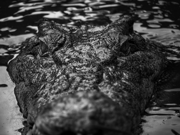A female Australian salt water crocodile is protecting her eggs from every threat.