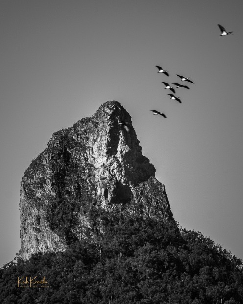 Captured in the Glass House Mountains region in Sunshinecoast, Queensland. A moment Coonowrin observed the birds flying past.