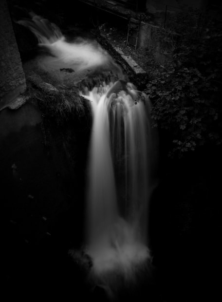 One of the waterfalls flowing in the middle of Moustiers-Sainte-Marie, France. Handheld long exposure.