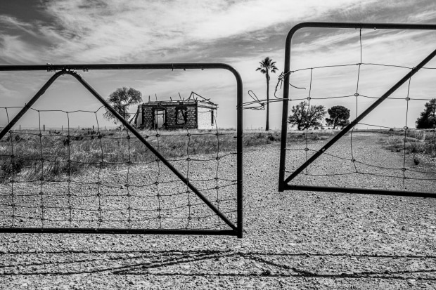 Typical of many farms, when good times come, the old family farmhouse is abandoned in favour of a new larger one. The old house is abandoned and left to the ravages of time. In this photo the lone parm tree stands sentinel over the now ruined house.