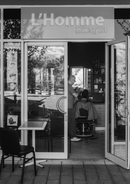 Meet my hairdresser who trades as L'Homme in Woden ACT and he is indeed 'The Man!' Shot in infrared and converted to monochrome.