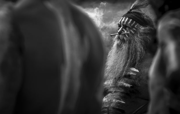 A water-healing ceremony, called Narjong, was held by traditional owners in Kosciuszko National Park in March 2019. It was the first of its kind to take place in over 160 years. This ceremony took place near the headwaters of the Murrumbidgee River, the propose of the ceremony was to protect the waterways from destruction, particularly from feral animals such as horses and deer. The man pictured is Ngarrindjeri eder Major 'Moogy' Sumner.