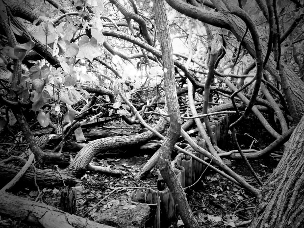 Mangroves overtake man-made structure from the past.