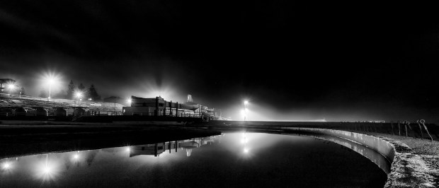 Rob Oyston, New Baths in Mist 2 B&W (Places)