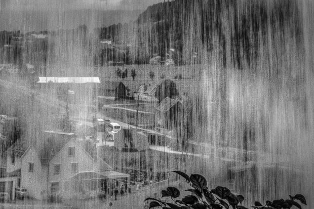 With other tourists I walked on a path behind a waterfall and took a shot of the village in the distance.