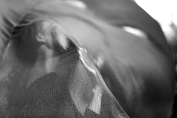 Velo sottile, confine tra visibile e invisibile. Sguardo che attraversa, mano che sorregge il silenzio. La donna forma viva, fragile e potente, insieme è presenza e mistero. Thin veil, border between visible and invisible. A gaze that passes through, a hand that supports silence. The woman is a living form, fragile and powerful, at the same time she is presence and mystery.