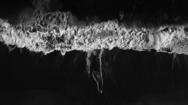 Drone image of waves rolling in along the Great Ocean Road