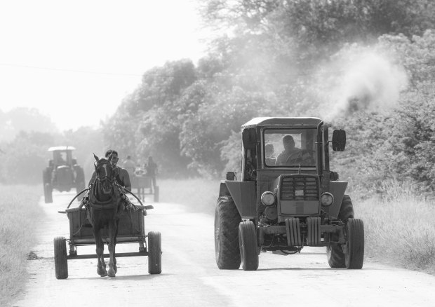 A country road in Cuba at harvest time.