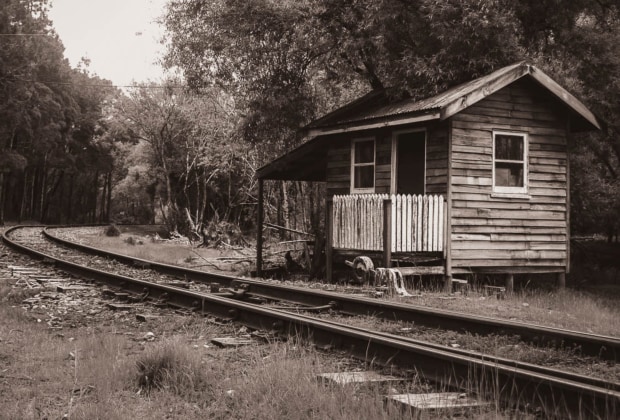 Taking the Rack and Pinion Train from Queenstown through the lush rainforest provided a multitude of opportunities to capture photos. This building, an old train station at the first stop in Lynchford was delightfully old and abandoned.