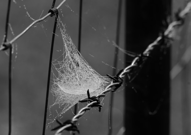 Going out for a drive and turned the corner to find a pocket of fog and a fence full of these wet spider webs