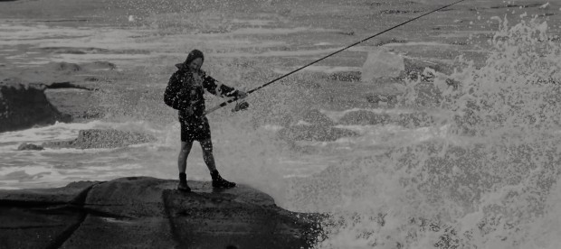 This rock fisherman braving the elements caught my eye whilst I was looking for some airborne gulls.