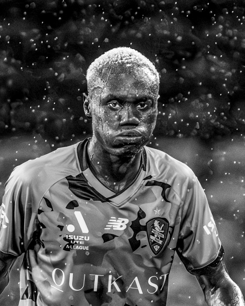 Ayom Mojok cuts a dejected figure as the Brisbane Roar are defeated by Macarthur FC. It rained for the entire game, making playing and photography extremely difficult.