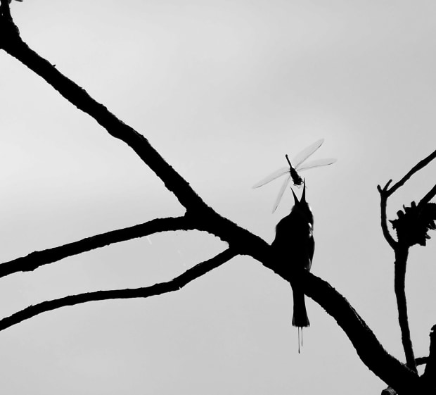 Rainbow Bee Eater about to catch it's breakfast. Mono adopted for this pic due to lighting not showing the amazing colours of the RBE, and brings more impact to the shot