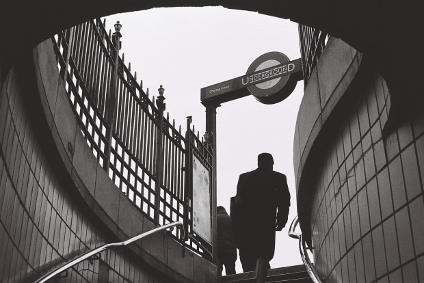 Captured using my trusty Nikon F3 and Ilford HP5 in April 2019. That moment just before emerging from the London Underground and out into Trafalgar Square.