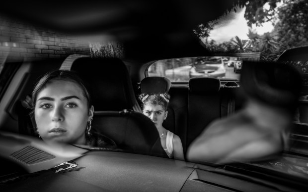 Passengers is a portrait of my daughters waiting to collect their other sister from school. We arrived early to ensure parking during stormy weather. I brought my camera to try capture lightning. Bored and impatient as they waited, I noticed both their expressions through the car mirror and turned the camera from the window toward them.