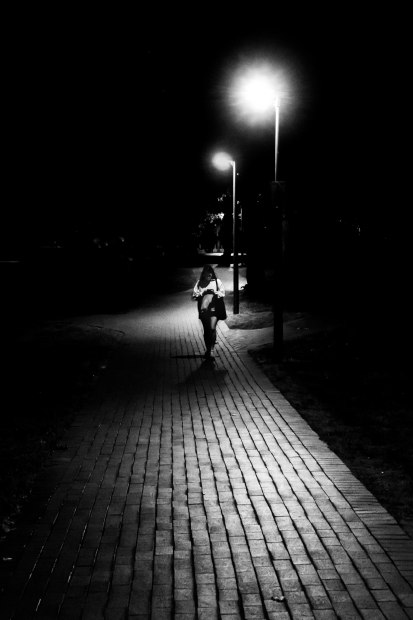 The pathway is almost consumed by the darkness of the park. Will you risk the darkness or take the long way round to get to the safety of home?