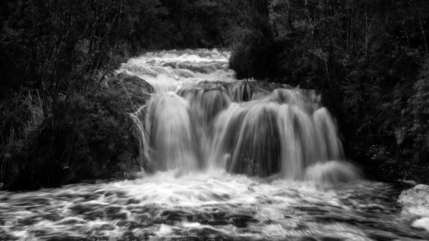 After two days of constant heavy rain, the falls at Pearl Creek in northwest Tasmania were powerful and impressive