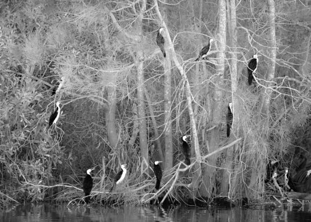 These Pied Cormorants were perched together in close community at the Noosa Everglades. Class of 2025.