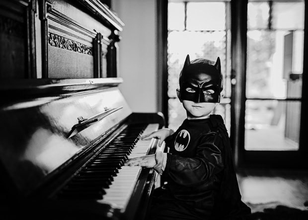 Just a boy, in character, playing his great great Grandmothers piano.