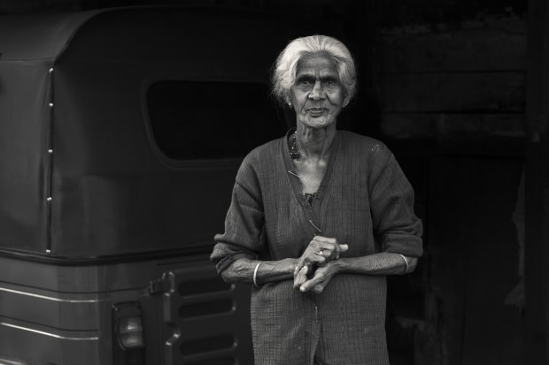 Tamil woman posing for photograph in the village of Balakatewa in the highlands of Sri Lanka