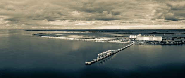 Port Giles in South Australia was built to export grain from the Yorke Peninsula to the world. This moody Panoramic captures the surrounding landscape, two towns and a windfarm.