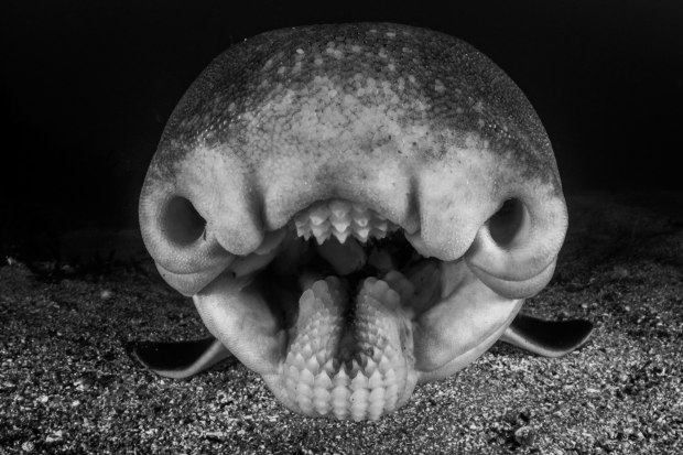 Up close and personal with a Port Jackson shark. Using a close-focus wide-angle, you can see right into its mouth and even spot the grinding plates it uses to crush shellfish. They might look fierce, but these sharks are gentle grazers, perfectly adapted to life on the rocky reefs of Sydney.