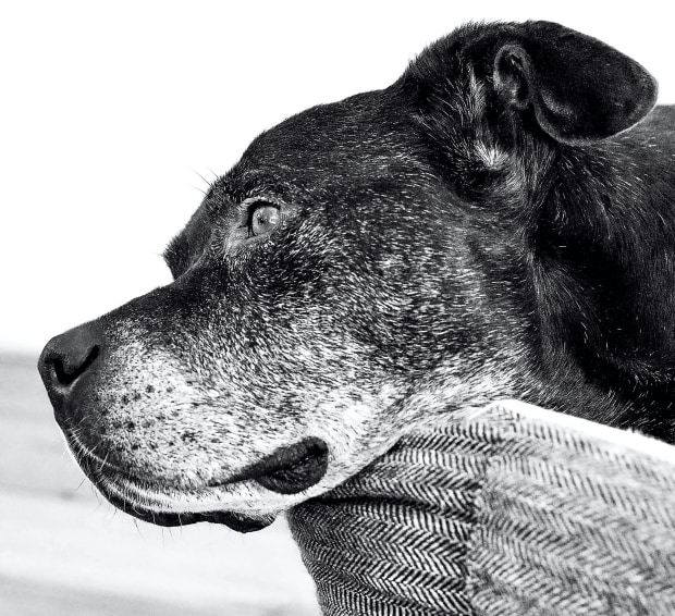 This is "Mr Boy", a rescue dog who found his forever home with a couple who adore him. His actual age is unknown. He is just the dearest old gentleman who gives as much love as he receives.
