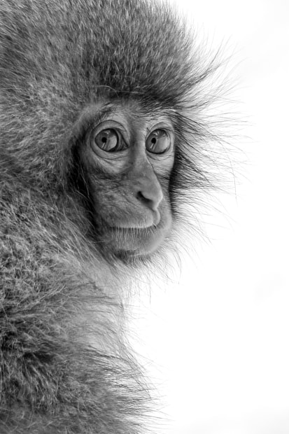 This young snow monkey was having fun playing with others. They then sat up and looked straight down my camera for a split second. Click! Perfect!