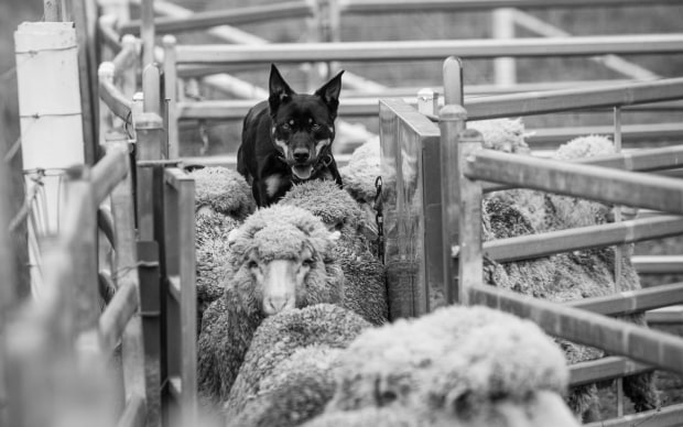 Australian working dogs like the Kelpie have a special place in our history. And they're still riding the sheeps' back. Dogs with laser focus and stock that can be unpredictable - it's a fast dance moving in the yards with a camera but one that always thrills.