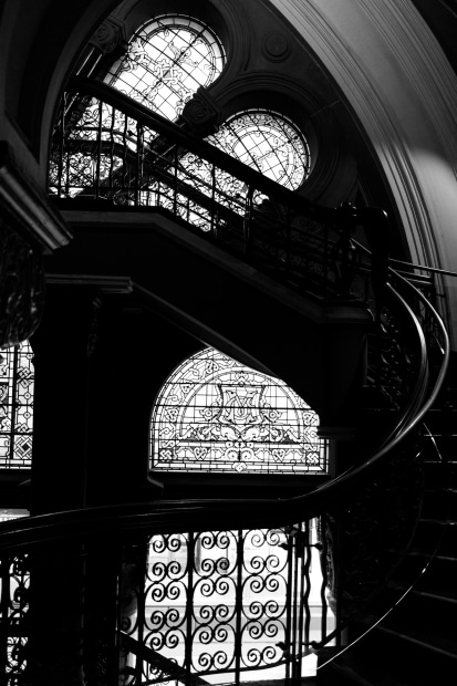 QVB Sydney. Photographs were taken of the glass and staircase to display the intricate details of the windows and interior.