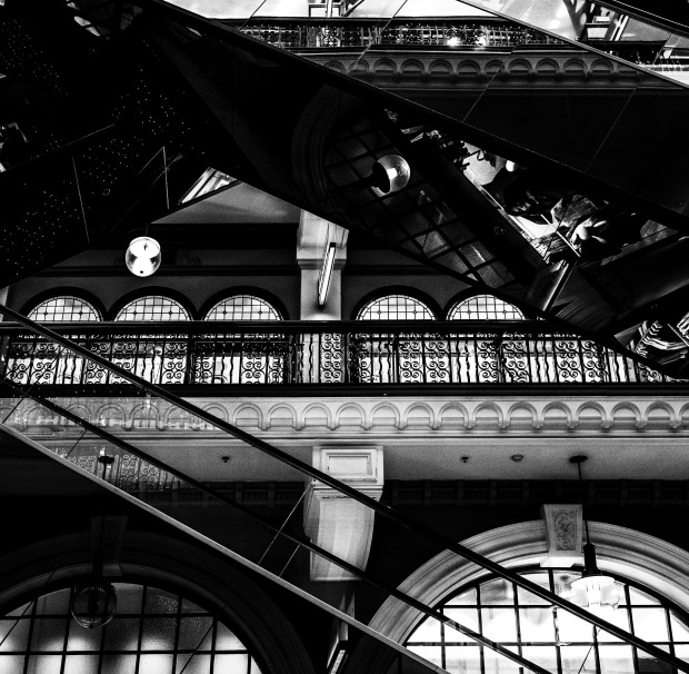 Leading lines and reflections intersect at the iconic QVB building in Sydney